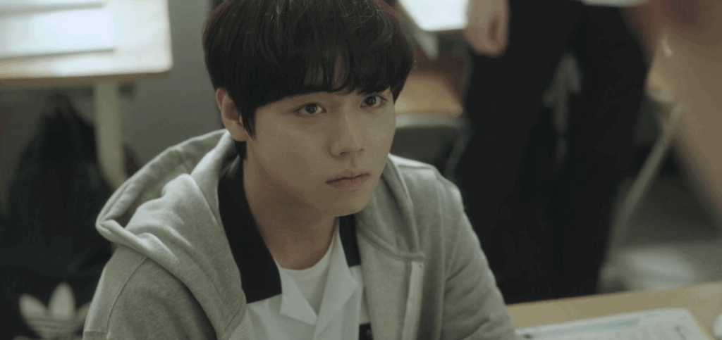 When you first watch the drama, you get swept up in the adrenaline. This quiet boy with deer eyes and a cat-like face suddenly shows his claws. (One commenter noted that even Su-ho was sitting in the back row at that point, clearly enjoying the show — and honestly, of course he was.)
