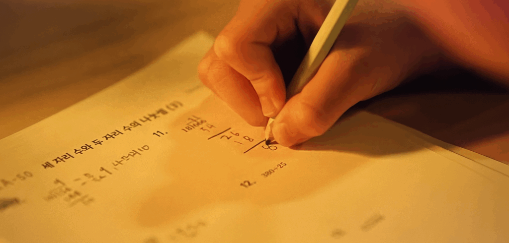 But look closely, and there’s no expectation in Si-eun — no vision of a future he’s working toward, no world beyond himself that he’s building for. He’s obsessed with the perfect circles on his test papers, yes. But he’s not building self-esteem through them, not accumulating the thrill of achievement.