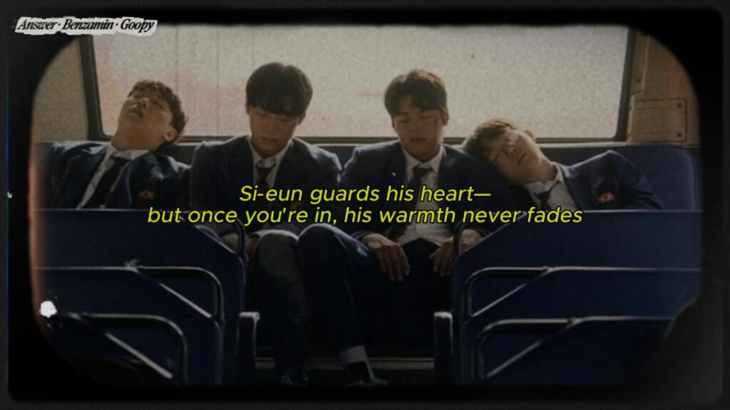 These boys don’t demand Si-eun’s perfection. They don’t need him to be anything more than present. Not too closeโthey maintain boundaries. Not too farโthey show up when it matters. Sustainable friendship. The kind that doesn’t consume you, doesn’t require constant proof, doesn’t explode the moment you fail to meet impossible standards.